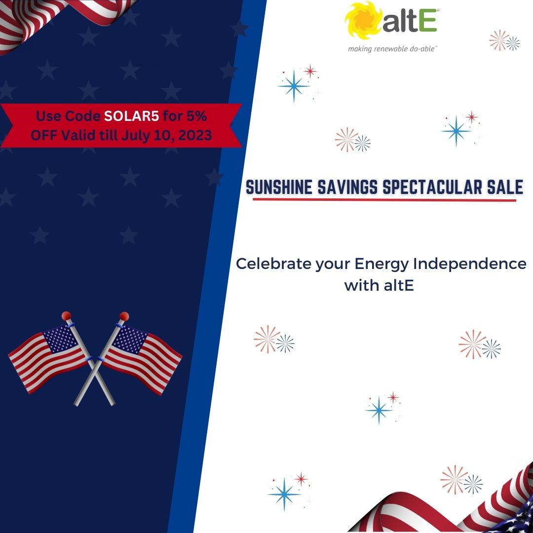 Embrace the Radiance of Summer! This Independence Day, celebrate with a bang! Enjoy up to 5% off at altEstore until July 10th. π Don't miss out on electrifying deals to power up your summer adventures! ⚡️π | | altE 330 Codman Hill Road Boxborough, MA 01719 © 2023 | All rights reserved. Unsubscribe | | | | |